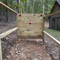 Nestled amidst the trees, Whiskey Acres is the perfect place to escape the stresses of daily life and immerse yourself in the tranquility of nature. Situated on a wooded lot that offers plenty of privacy and space to explore; you'll love spending your days hiking the woods, tossing axes in the axe throw area, relaxing in the hot tub or simply lounging on the spacious decks. Whether you're looking for a romantic retreat or a fun-filled family getaway, you'll love your stay.